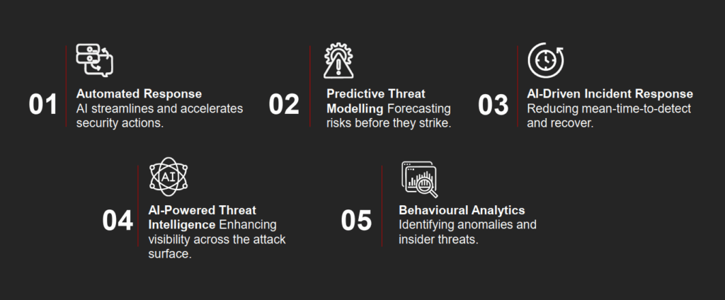 AI ไม่ใช่เรื่องของการคิดเพื่ออนาคตอีกต่อไป แต่ใช้ดำเนินงานได้จริง องค์กรทั่วประเทศไทยกว่า 9 ใน 10 กำลังใช้ AI ในสภาพแวดล้อมการดำเนินงานด้านความปลอดภัย หลายองค์กรมีพัฒนาการในการใช้ AI อย่างรวดเร็ว จากการใช้เพื่อตรวจจับ ไปสู่กรณีการใช้งานที่ล้ำหน้ามากยิ่งขึ้น เช่นการตอบสนองอัตโนมัติ (Automated Response) การสร้างแบบจำลองเพื่อคาดการณ์ภัยคุกคาม (Predictive Threat Modelling) การตอบสนองต่อเหตุการณ์ (AI-driven Incident Response) การให้ข่าวกรองภัยคุกคามที่ขับเคลื่อนด้วย AI (AI-powered Threat Intelligence) รวมถึงการวิเคราะห์พฤติกรรม (Behavioural Analytics) ซึ่งหนึ่งในห้ากรณีการใช้งานชั้นนำเหล่านี้ แสดงให้เห็นว่าการตรวจจับกลายเป็นมาตรฐานพื้นฐาน ในขณะที่การตอบสนอง การคาดการณ์ และการจัดการเครื่องมือต่างๆ คือความก้าวหน้าในปัจจุบัน