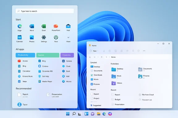 - Responsive Layout: หน้าตาของ Start Menu จะปรับขนาดตามหน้าจอโดยอัตโนมัติ บนจอขนาดใหญ่จะแสดงผลแอปที่ปักหมุด (Pinned apps) และรายการแนะนำ (Recommended) ได้มากขึ้น