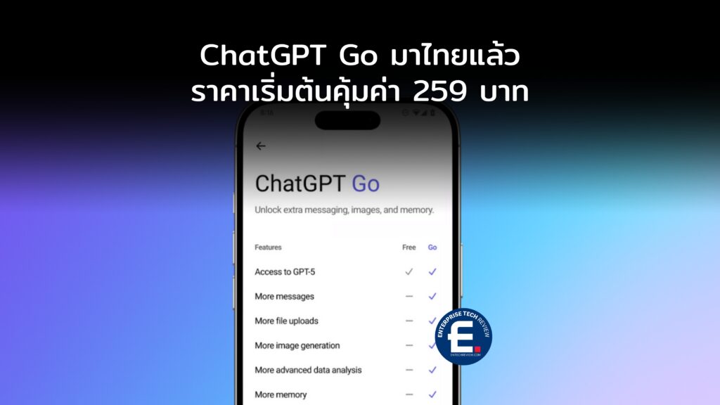 • ChatGPT Go: 259 บาท/เดือน สำหรับผู้ใช้ทั่วไป