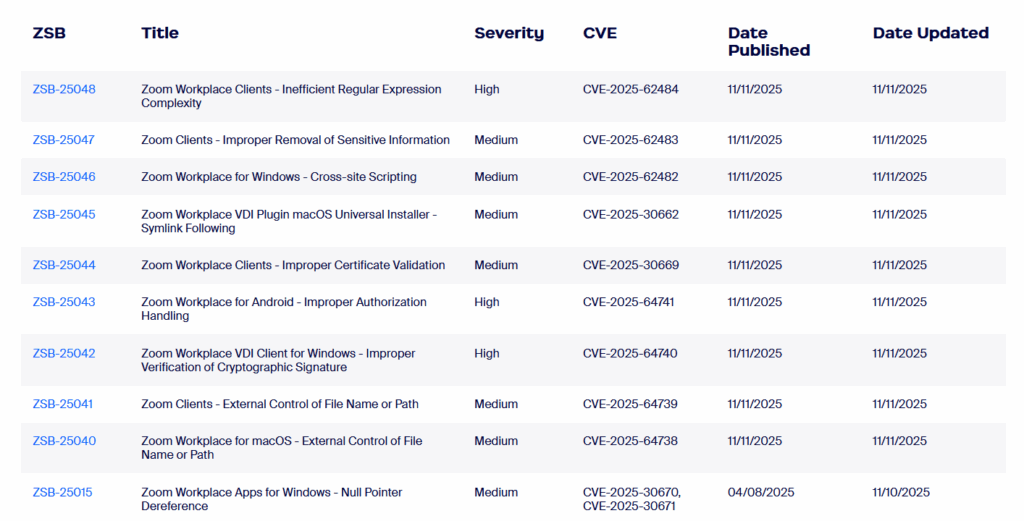 อีกหนึ่งช่องโหว่ร้ายแรงคือ CVE-2025-64741 ใน Zoom Workplace สำหรับ Android ที่มีปัญหาการตรวจสอบสิทธิ์ไม่เพียงพอ แฮกเกอร์สามารถใช้ช่องโหว่นี้เพื่อข้ามการควบคุมการเข้าถึง เข้าร่วมประชุมโดยไม่ได้รับอนุญาต หรือเข้าถึงข้อมูลสำคัญในเซสชันการประชุมได้ ซึ่งส่งผลกระทบต่อ Android เวอร์ชันก่อนการแพตช์ล่าสุด