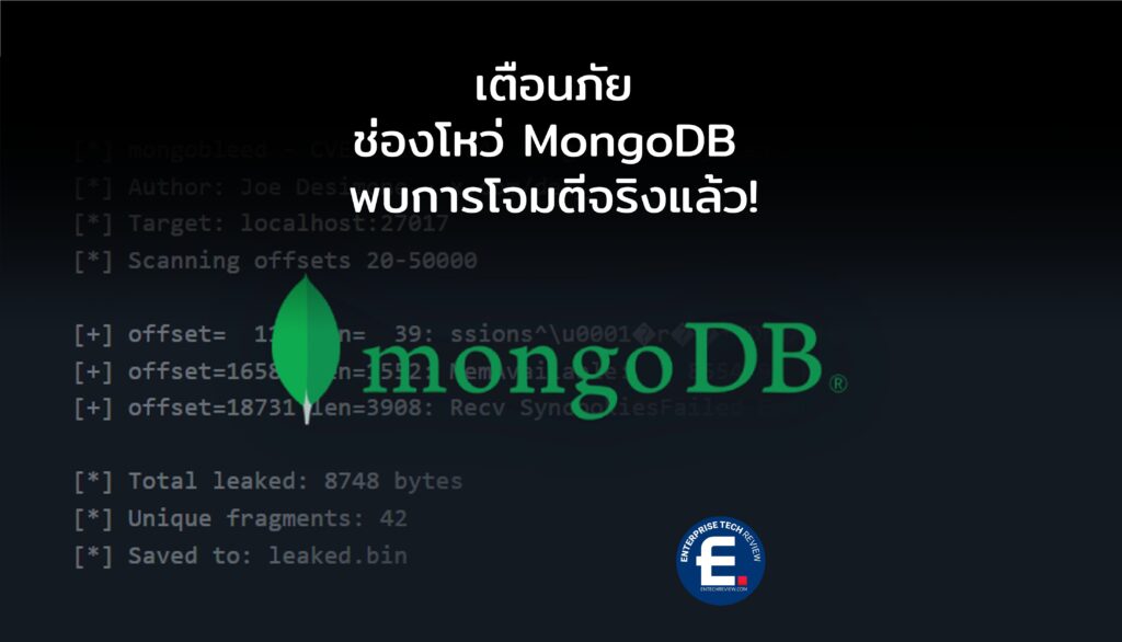 จากกรณีการพบช่องโหว่ความปลอดภัยใน MongoDB ที่เราได้รายงานไปก่อนหน้านี้ สถานการณ์ล่าสุดได้ยกระดับความรุนแรงขึ้นสู่ระดับ “วิกฤต” หลังจากนักวิจัยด้านความปลอดภัยพบหลักฐานการโจมตีจริงในโลกไซเบอร์ พร้อมขนานนามช่องโหว่นี้ว่า “MongoBleed” เนื่องจากมันสามารถดูดข้อมูลความลับออกจากหน่วยความจำได้เหมือนแผลที่เลือดไหลไม่หยุด
