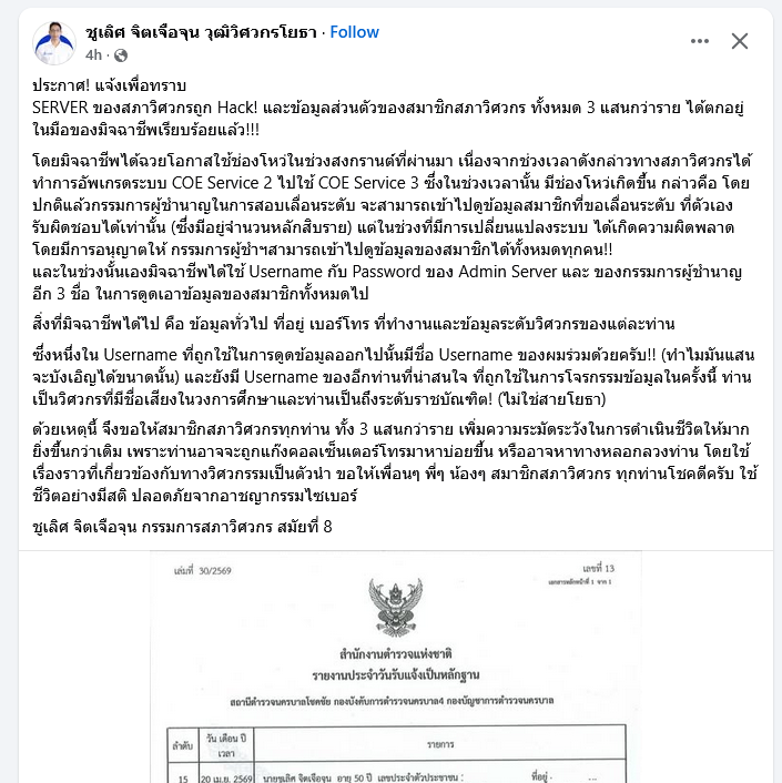แฮกระบบสภาวิศวกรช่วงสงกรานต์! ข้อมูลสมาชิกกว่า 3 แสนรายรั่ว หลังช่องโหว่ช่วงอัปเกรดระบบ