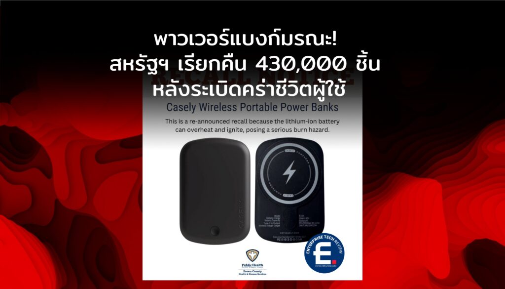 คณะกรรมาธิการความปลอดภัยสินค้าอุปโภคบริโภคของสหรัฐฯ หรือ U.S. Consumer Product Safety Commission (CPSC) ร่วมกับ Casely ได้ประกาศเรียกคืนพาวเวอร์แบงก์รุ่น Casely Power Banks ความจุ 5000mAh แบบ MagSafe wireless รวมกว่า 430,000 ชิ้นอีกครั้ง